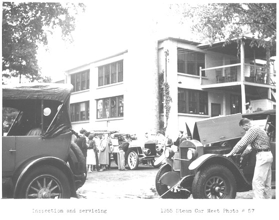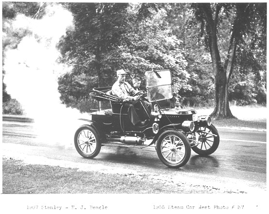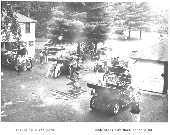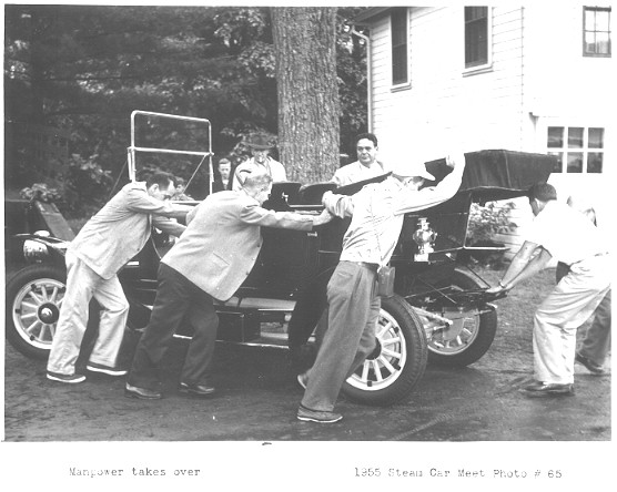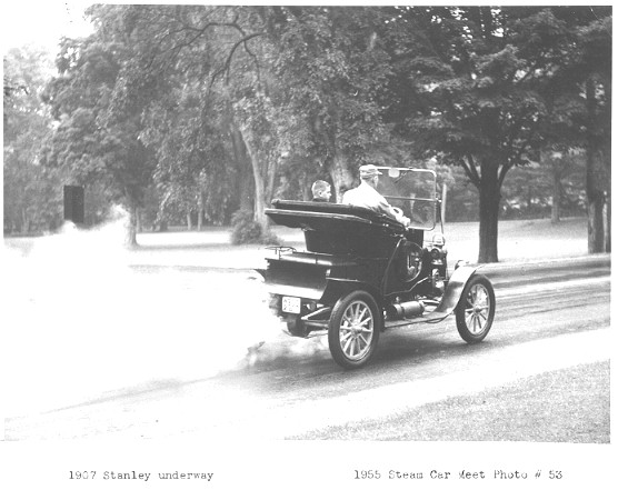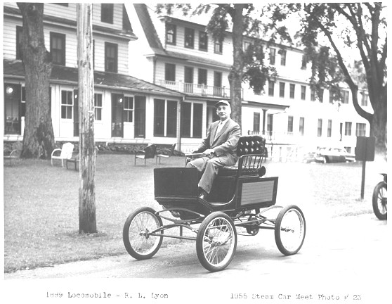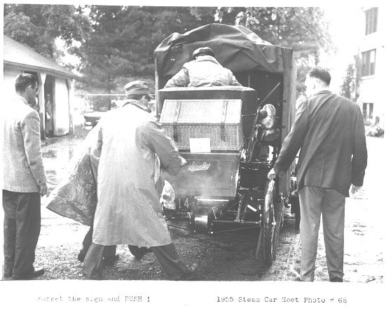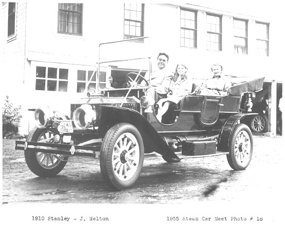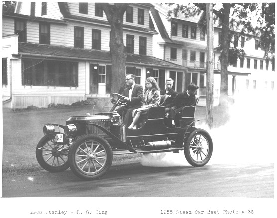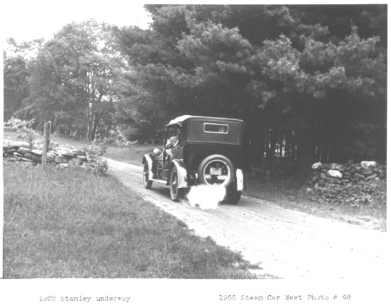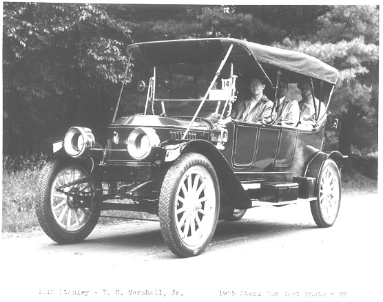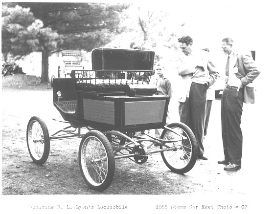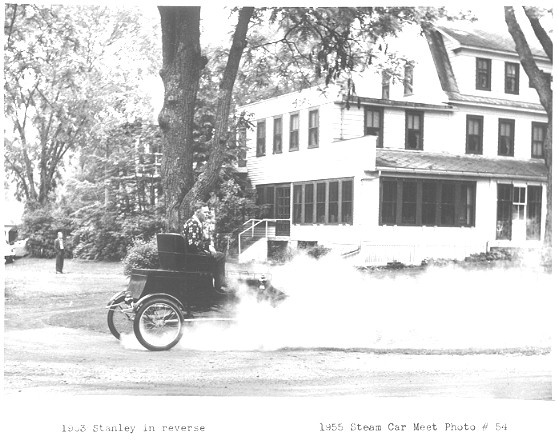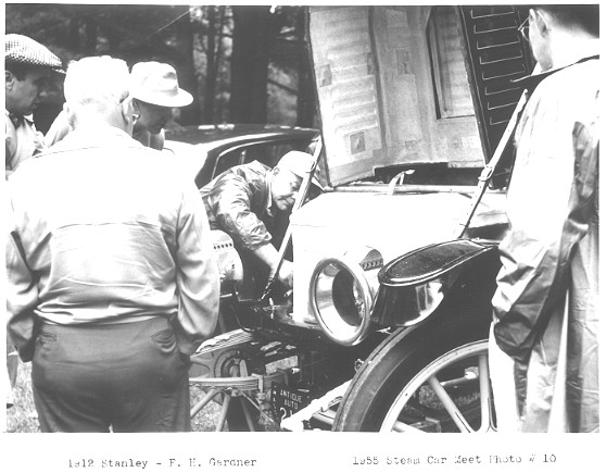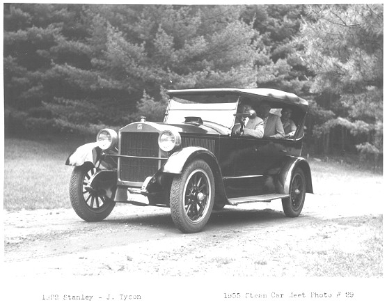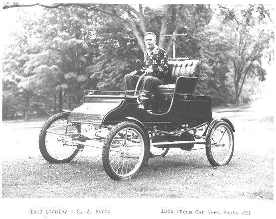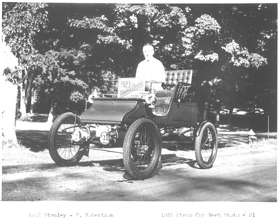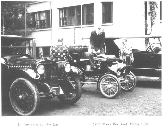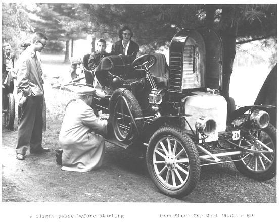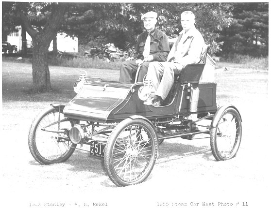 Kimmel for a copy of the original list of registrants for the meet. (All information is verbatim from that list.) A number of these people and cars are neither mentioned in the Ellis article, below, nor shown in the photo set; it seems likely that not all registrants actually attended. 1. Art Mix, 1899 Locomobile Runabout 2. Robert Ostwald, 1916 [sic] Stanley Roadster [#17704] 3. John P. Miller, 1907 White M [sic - actually model G] Touring 4. Frank H. Gardner, 1912 Stanley 74 20hp Touring [#6520] 5. Earle S. Eckel, 1903 Stanley 6.5hp Runabout [#845] 6. J. Donald Gibson, 1922 Stanley 735 Roadster [#22067] 7. George Schieffelin, 1903 Prescott 8. James Beun, 1903 Grout Runabout 9. C. E. Simmons, 1922 Stanley 740 Touring [# unknown] 10. Leo B. Reagan, 1900 Locomobile Runabout 11. James Melton, 1910 Stanley 70 20hp Touring [#6164] 12. Stanley W. Ellis, 1922 Stanley 740 Touring [probably #22212] 13. Carl M. Ranta, 1903 Stanley 6.5hp Runabout [#716] 14. Thomas C. Marshall, Jr., 1912 Stanley 87 30hp Touring [#6524] 15. Francis W. Bunting, 1925 Stanley SV Touring [#25007] 16. Robert L. Lyon, 1899 Locomobile Runabout 17. Paul A. Bourdon, 1910 [sic] Stanley 10hp Touring [#6373] 18. Robert J. Bohaty, 1899 Locomobile Runabout 19. John Tyson, 1922 Stanley 740 Touring [# unknown] 20. Harold D. Marcotte, 1924 Stanley [#24076] 21. Charles R. Smith, 1903 Locomobile Runabout 22. Ellis Robertson, 1903 Stanley 6.5hp Runabout [# unknown] 23. T. Clarence Marshall, 1924 Doble Touring 24. E. S. Johnson, 1922 Stanley 740 Roadster [# unknown] 25. Norbert L. Behrendt, 1927 [sic] Stanley 740 Touring [#23509] 26. R. Gardner King, 1908 Stanley 10hp Touring [#4521] 27. J. J. Warner, 1955 Warner Conversion Sedan 28. E. J. Beagle, Stanley 10hp [#3595] 29. Harlowe Zinn, 1907 Stanley EX Runabout [#3255] 30. Ralph VanDine, 1913 Stanley 10hp Roadster [#7163] 31. L. Edward Pamphilon, 1919 [sic] Stanley 735 Touring [#18170] 32. Ralph Powers, 1910 Stanley 10hp Touring [# unknown] |