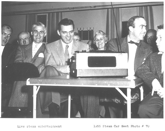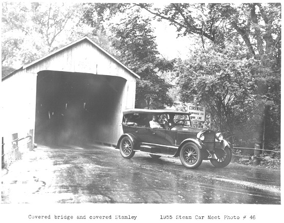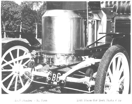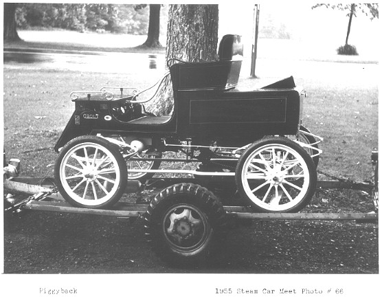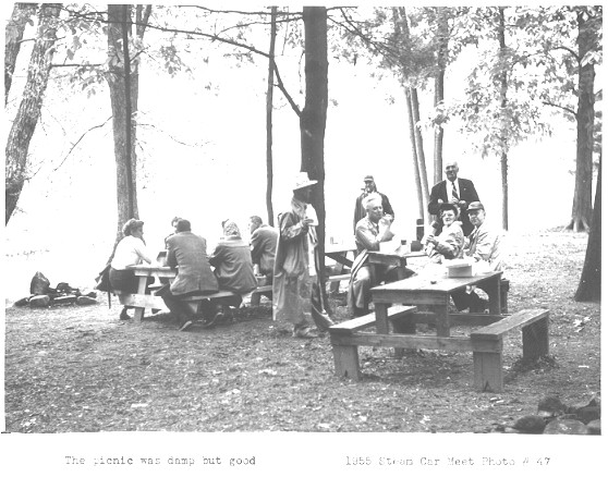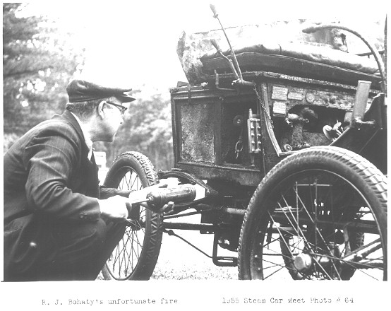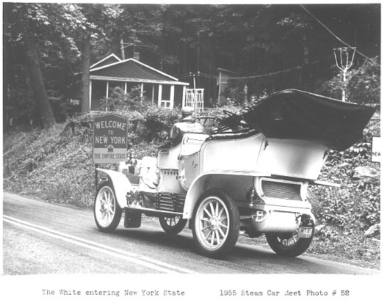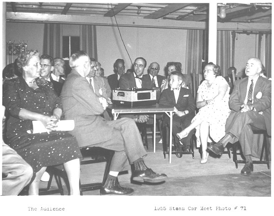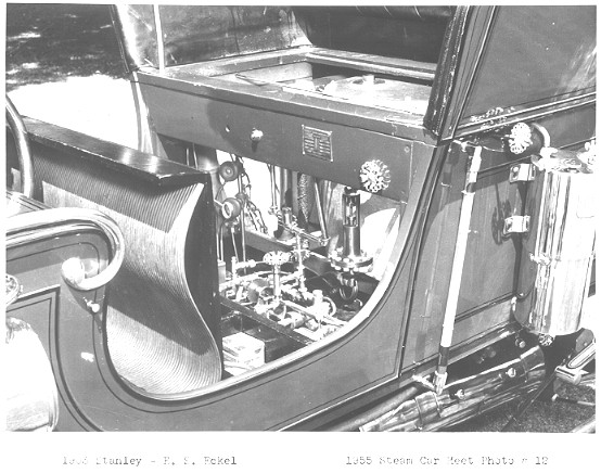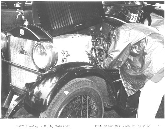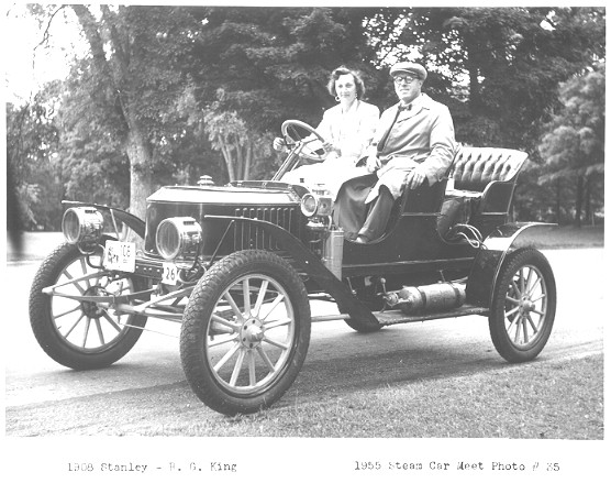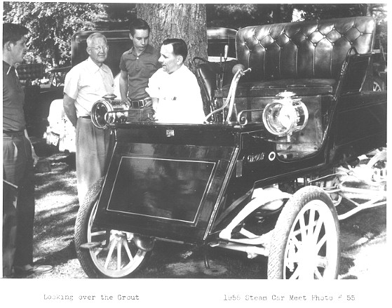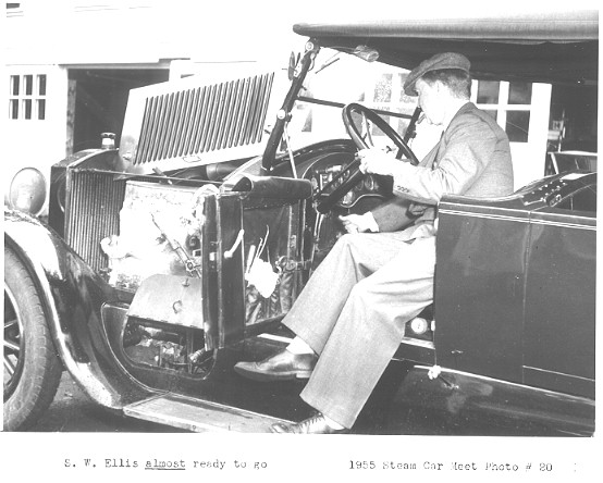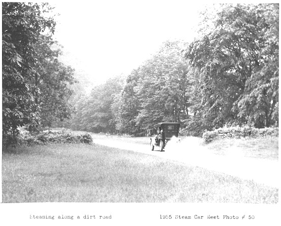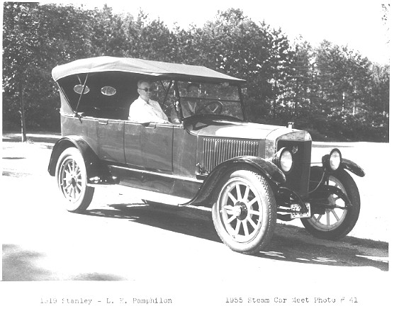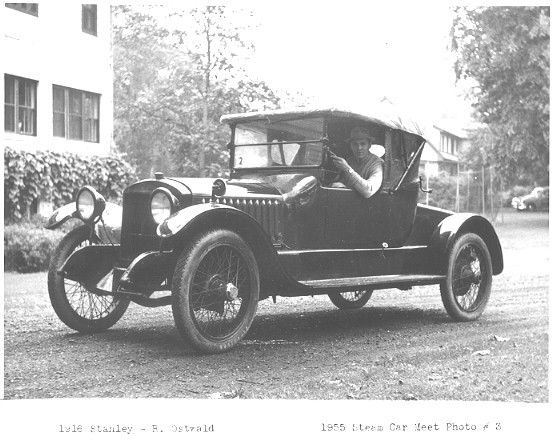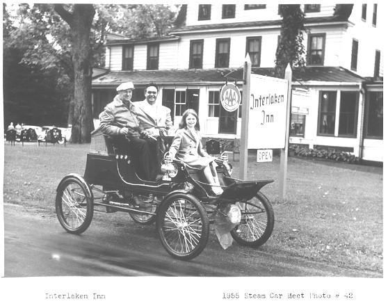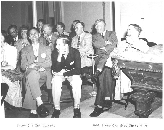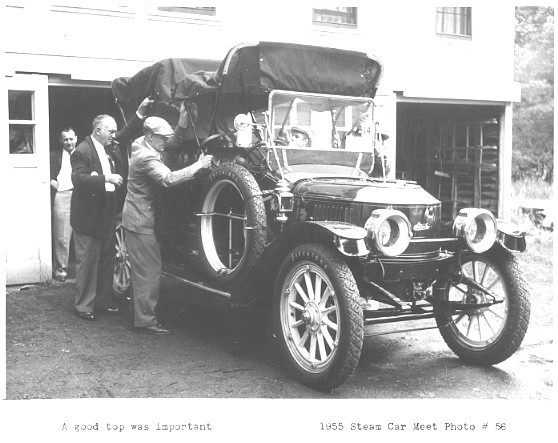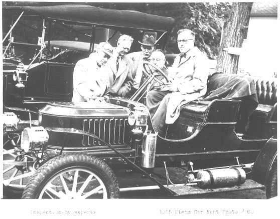 Kimmel for a copy of the original list of registrants for the meet. (All information is verbatim from that list.) A number of these people and cars are neither mentioned in the Ellis article, below, nor shown in the photo set; it seems likely that not all registrants actually attended. 1. Art Mix, 1899 Locomobile Runabout 2. Robert Ostwald, 1916 [sic] Stanley Roadster [#17704] 3. John P. Miller, 1907 White M [sic - actually model G] Touring 4. Frank H. Gardner, 1912 Stanley 74 20hp Touring [#6520] 5. Earle S. Eckel, 1903 Stanley 6.5hp Runabout [#845] 6. J. Donald Gibson, 1922 Stanley 735 Roadster [#22067] 7. George Schieffelin, 1903 Prescott 8. James Beun, 1903 Grout Runabout 9. C. E. Simmons, 1922 Stanley 740 Touring [# unknown] 10. Leo B. Reagan, 1900 Locomobile Runabout 11. James Melton, 1910 Stanley 70 20hp Touring [#6164] 12. Stanley W. Ellis, 1922 Stanley 740 Touring [probably #22212] 13. Carl M. Ranta, 1903 Stanley 6.5hp Runabout [#716] 14. Thomas C. Marshall, Jr., 1912 Stanley 87 30hp Touring [#6524] 15. Francis W. Bunting, 1925 Stanley SV Touring [#25007] 16. Robert L. Lyon, 1899 Locomobile Runabout 17. Paul A. Bourdon, 1910 [sic] Stanley 10hp Touring [#6373] 18. Robert J. Bohaty, 1899 Locomobile Runabout 19. John Tyson, 1922 Stanley 740 Touring [# unknown] 20. Harold D. Marcotte, 1924 Stanley [#24076] 21. Charles R. Smith, 1903 Locomobile Runabout 22. Ellis Robertson, 1903 Stanley 6.5hp Runabout [# unknown] 23. T. Clarence Marshall, 1924 Doble Touring 24. E. S. Johnson, 1922 Stanley 740 Roadster [# unknown] 25. Norbert L. Behrendt, 1927 [sic] Stanley 740 Touring [#23509] 26. R. Gardner King, 1908 Stanley 10hp Touring [#4521] 27. J. J. Warner, 1955 Warner Conversion Sedan 28. E. J. Beagle, Stanley 10hp [#3595] 29. Harlowe Zinn, 1907 Stanley EX Runabout [#3255] 30. Ralph VanDine, 1913 Stanley 10hp Roadster [#7163] 31. L. Edward Pamphilon, 1919 [sic] Stanley 735 Touring [#18170] 32. Ralph Powers, 1910 Stanley 10hp Touring [# unknown] |